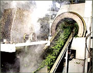 摘み取った茶葉をできるだけ早く、蒸して処理します。